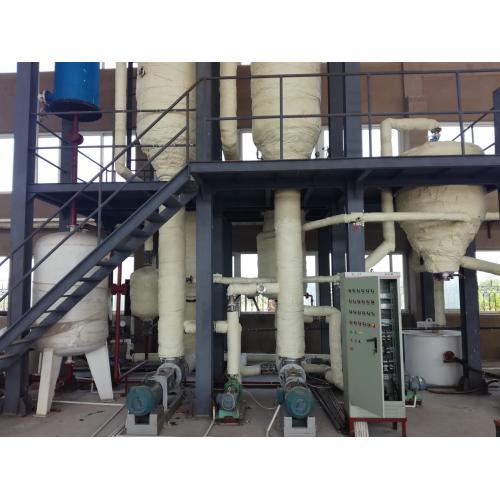 含氯化钙原料水中的溶剂溶解度随温度升高不断增大,即在整个蒸发过程中没有盐析出,蒸发浓缩过程中不必除盐,极大地简化了工艺流程,蒸发工艺流程和操作相对简单。因此采用双效逆流强制循环蒸发装置。又因其物理性质必须采用冷却造粒方法结晶,均带有结晶水形成大块固体,需采用片碱机。